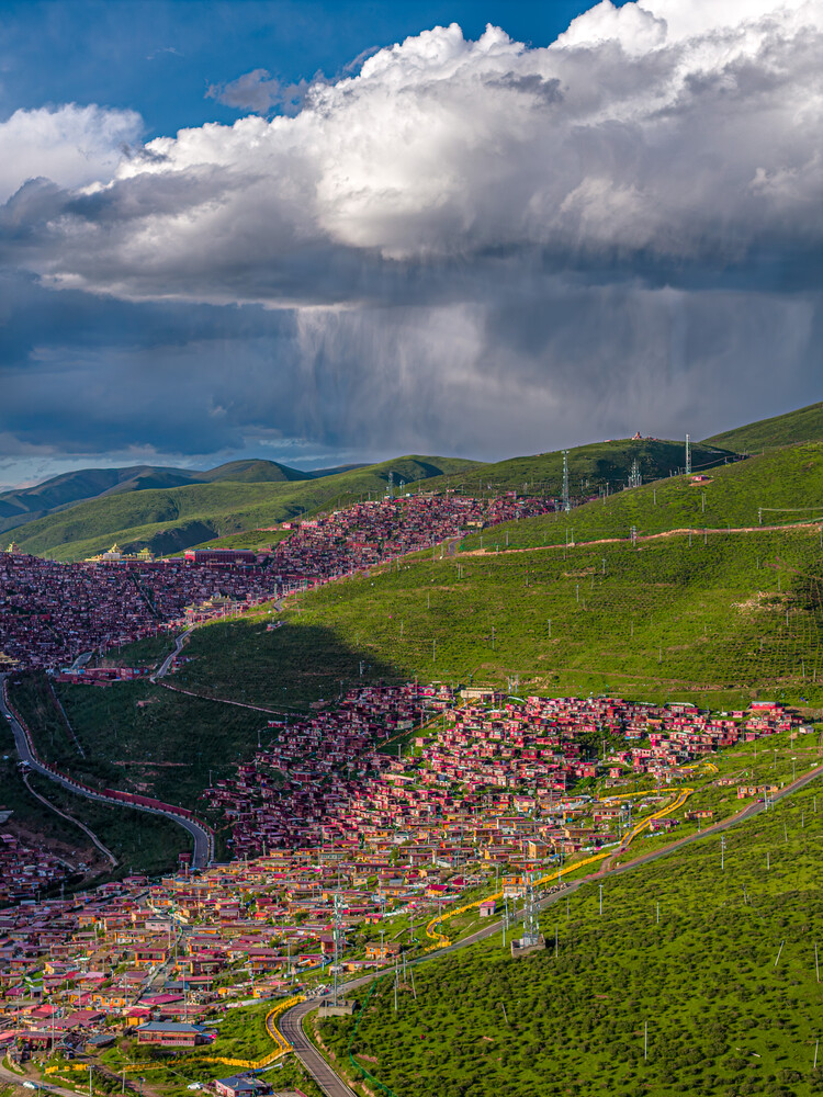 雲瀑下寧靜的五明佛學院
